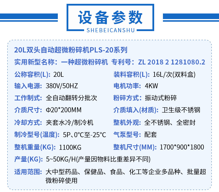 磨筒的夾套通入冷卻水。通過調(diào)節(jié)冷卻水的溫度和流量可控制粉碎溫度。低溫粉碎,制冷溫度可達-35℃(高檔低溫配置)。